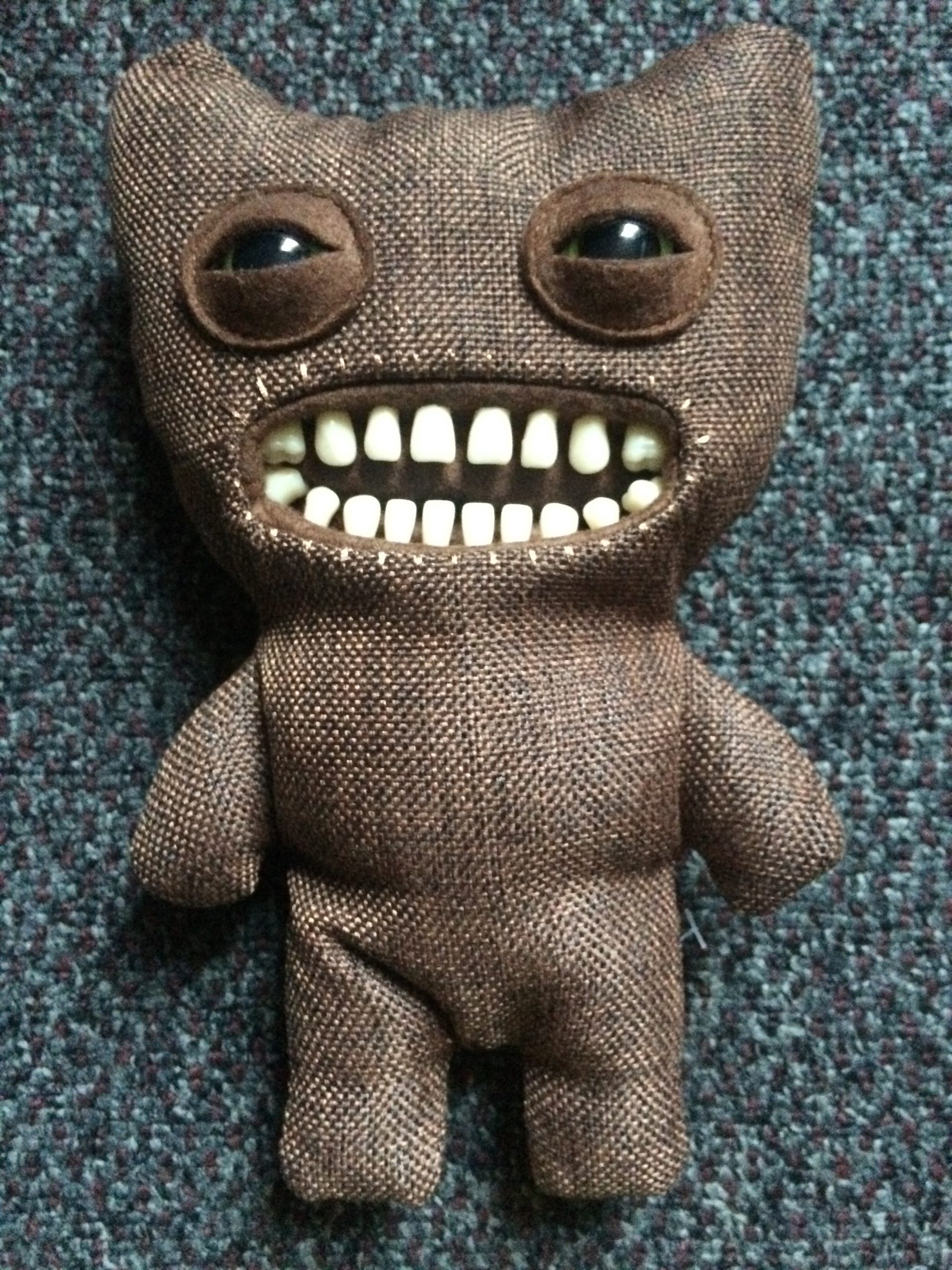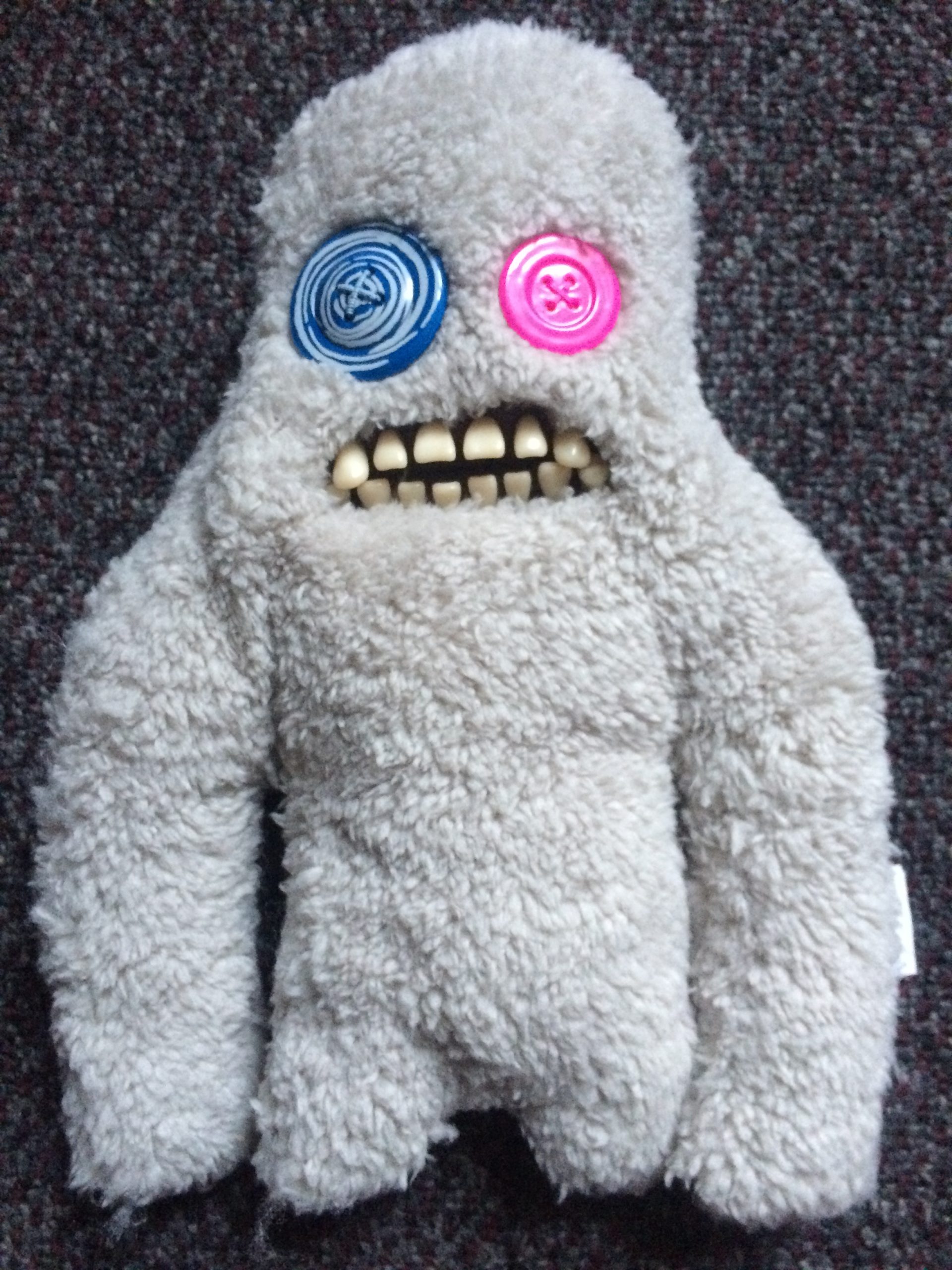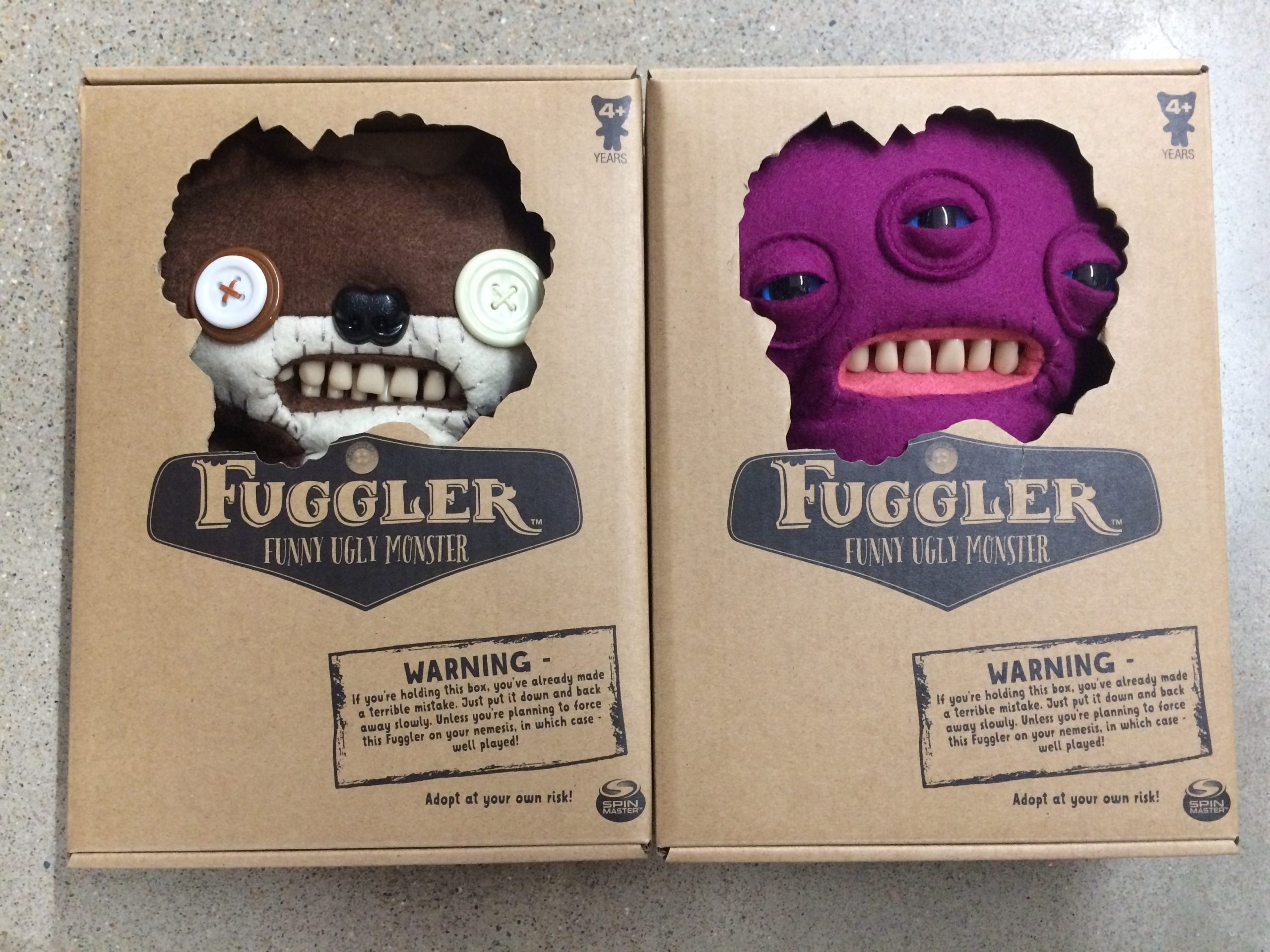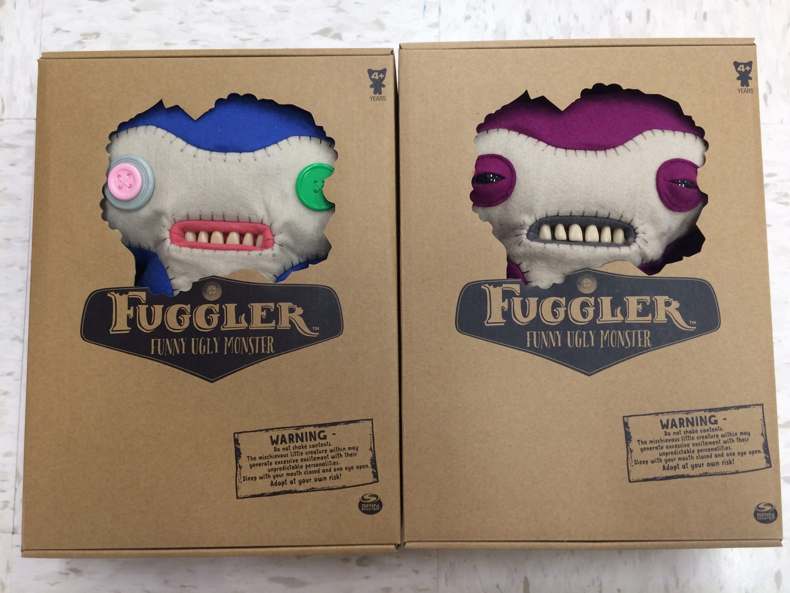 These fun, plush dolls come packaged in simple, but very entertaining boxes, warning you against buying them. The first draw is their designs, featuring very realistic looking human-type teeth. The second draw is the boxes they come in. Statements such as “Adopt at your own risk!” and “Open with caution!” adorn the box, adding to the experience of owning one of these creatures. They even warn you on the back to not visit the Fuggler website (visit it HERE), a great marketing gimmick.