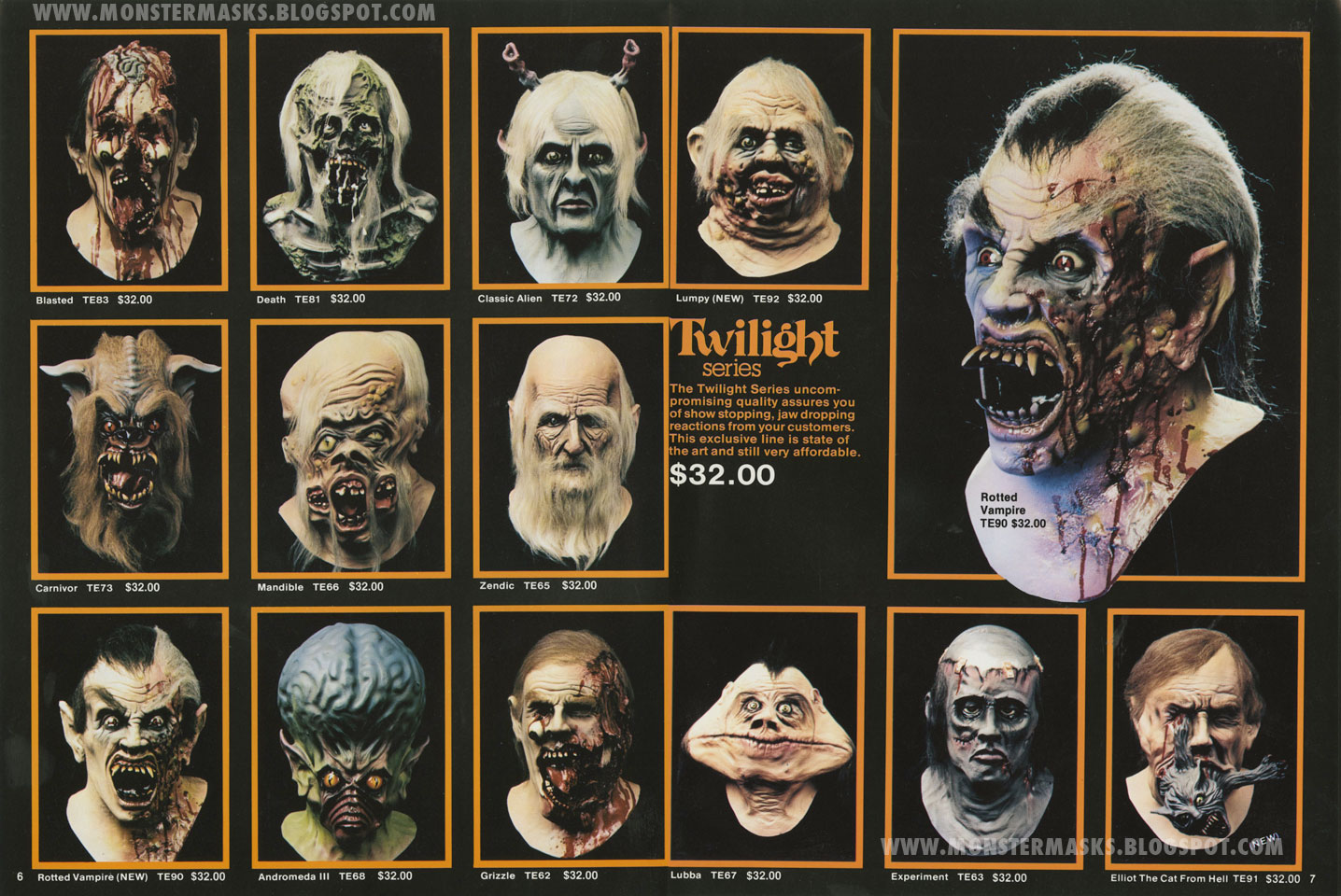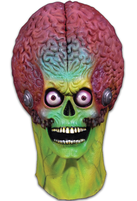 Over the years, mask companies have also released alien masks that featured oversized, brain-like heads. Distortions Unlimited released the amazing Andromeda III in the mid 80’s and more recently created Brainiac the Maniac in the Monster of the Month line. Trick Or Treat Studios also released the only licensed versions of the aliens from Tim Burton’s MARS ATTACKS! The one on the left is called a Drone and the one on the right, a super deluxe version, is called Soldier.