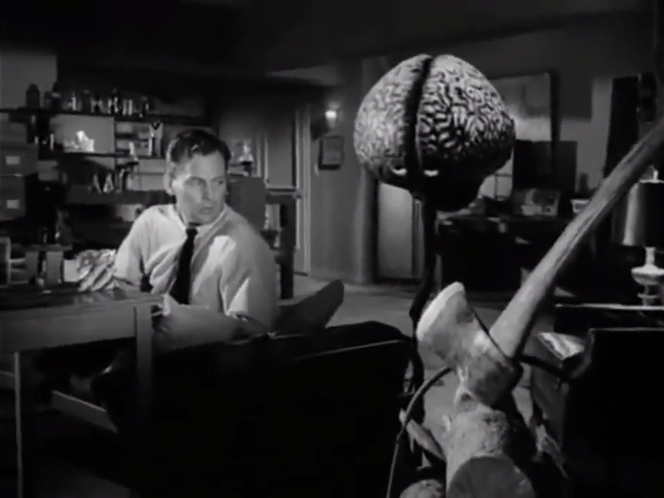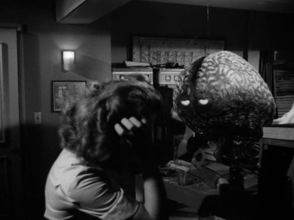 I have always been a fan of the big-brained aliens, like the Metaluna Mutant in 1955’s THIS ISLAND EARTH or my all-time favorite alien, the Saucer-Men from 1957’s INVASION OF THE SAUCER-MEN. Tim Burton kept the tradition alive with his very entertaining film, MARS ATTACKS! from 1996. For actual brain creatures, you need look no further than FIEND WITHOUT A FACE (1958) and THE BRAIN FROM PLANET AROUS (1957).