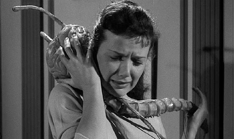 Here we are introduced to the second big-brained alien, the Mutant, a bio-engineered slave. Though their brains are huge, they are not very intelligent and do not, or can not, think on their own. Though they are supposed to be guards of the planet Metaluna, they seem to die very easily on their own without the aid of the hero. The design of this alien is phenomenal and Bud Westmore should be commended.