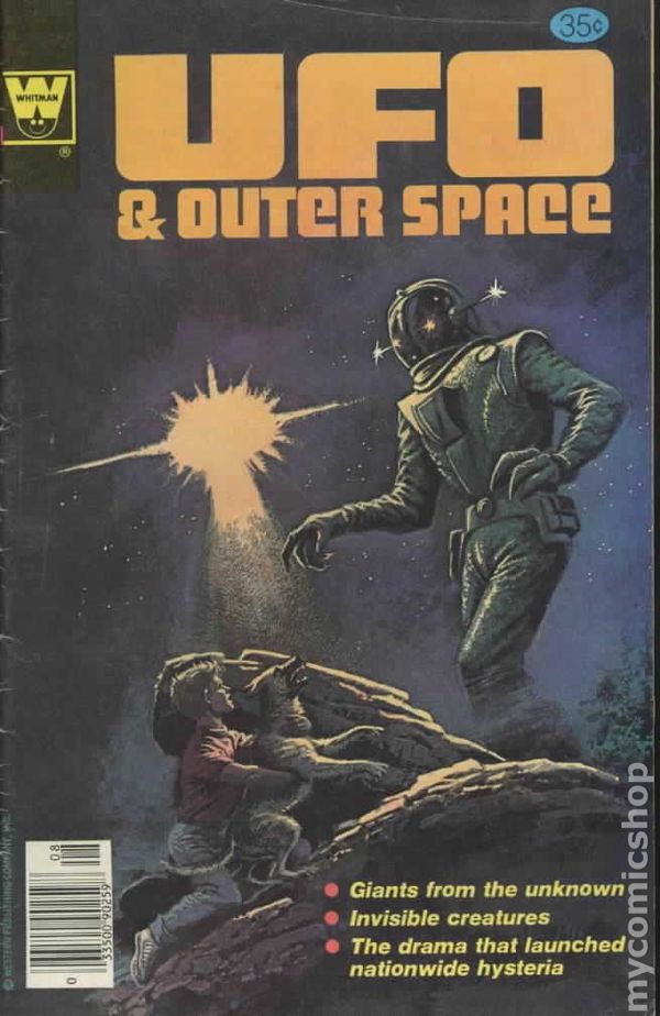 At the same time that the Gold Key issues of UFO & Outer Space were on the newsstands, you could also buy all twelve issues in three-packed bags under the Whitman Comics name, both of which were owned by Western Publishing Company. They were the exact same issues, with the exact same covers, only available now in toy and department stores. The remaining nine issues in the series featured new stories.