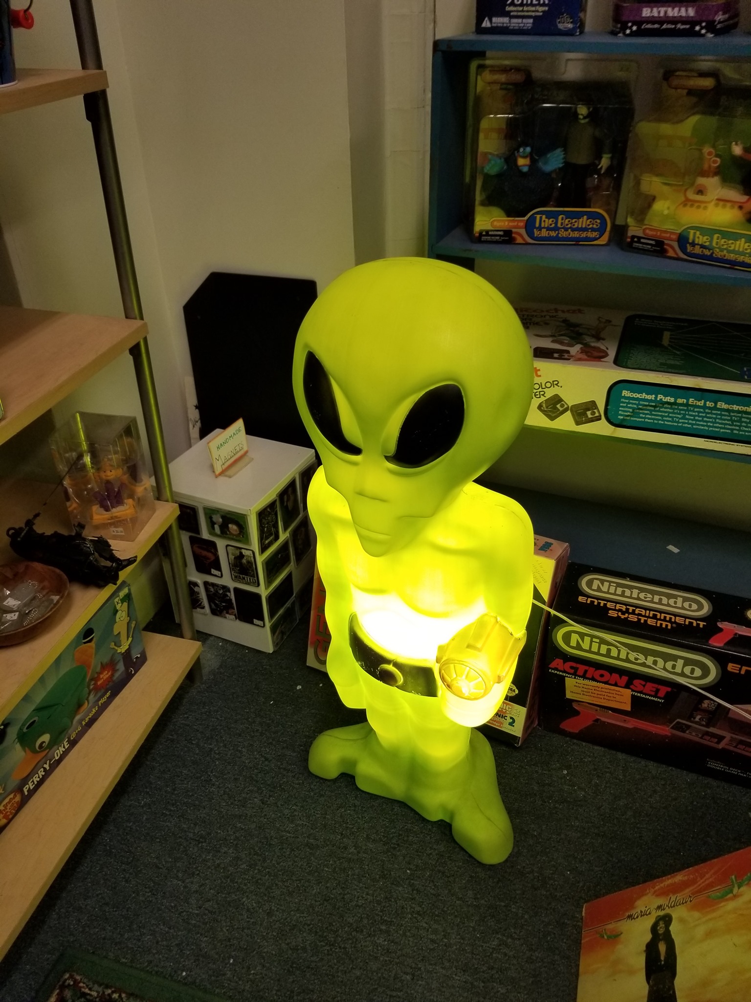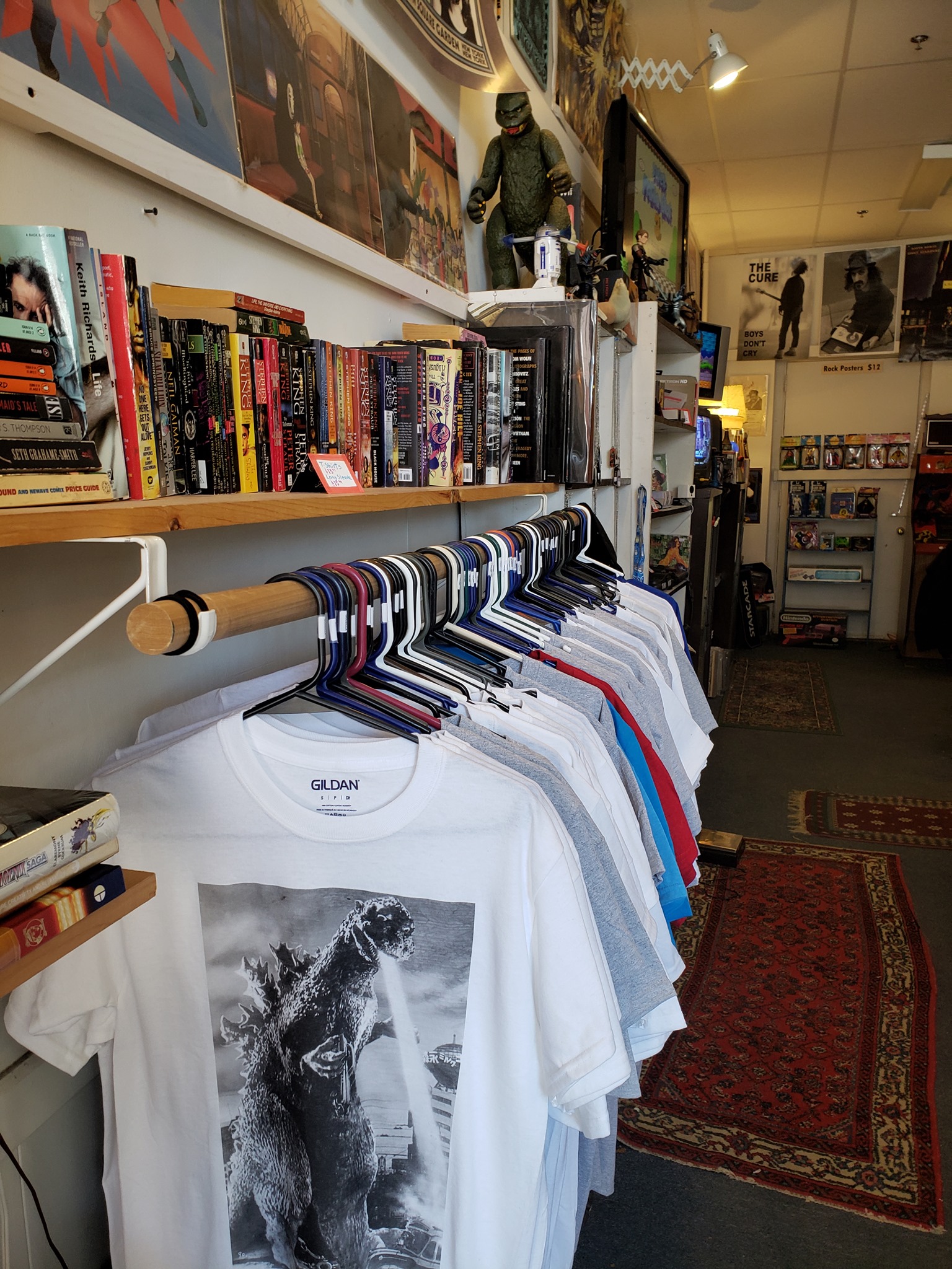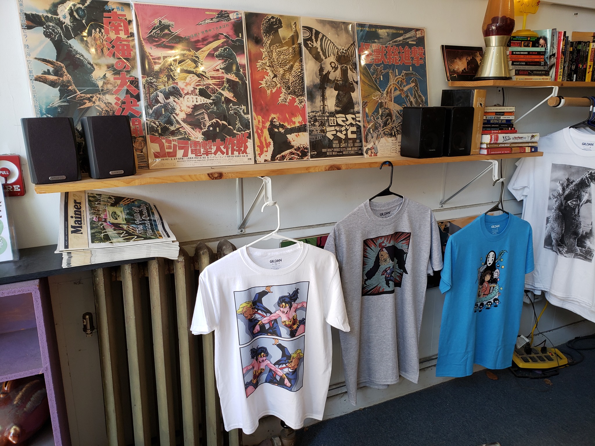 We stayed in the store for about 40 minutes, checking out all of the offerings and talking to the owner. He was very knowledgeable and had fun stories to tell about the Godzilla posters, a personal interest of mine. He told us how that day was actually going to be his last day open as he was just not getting any visitors. He expressed concerns over the store’s rent and overhead, hoping that online sales would keep him going. We ended up buying three Toho posters, which we had framed, an INVASION OF THE SAUCER-MEN cardboard cutout and a patch.