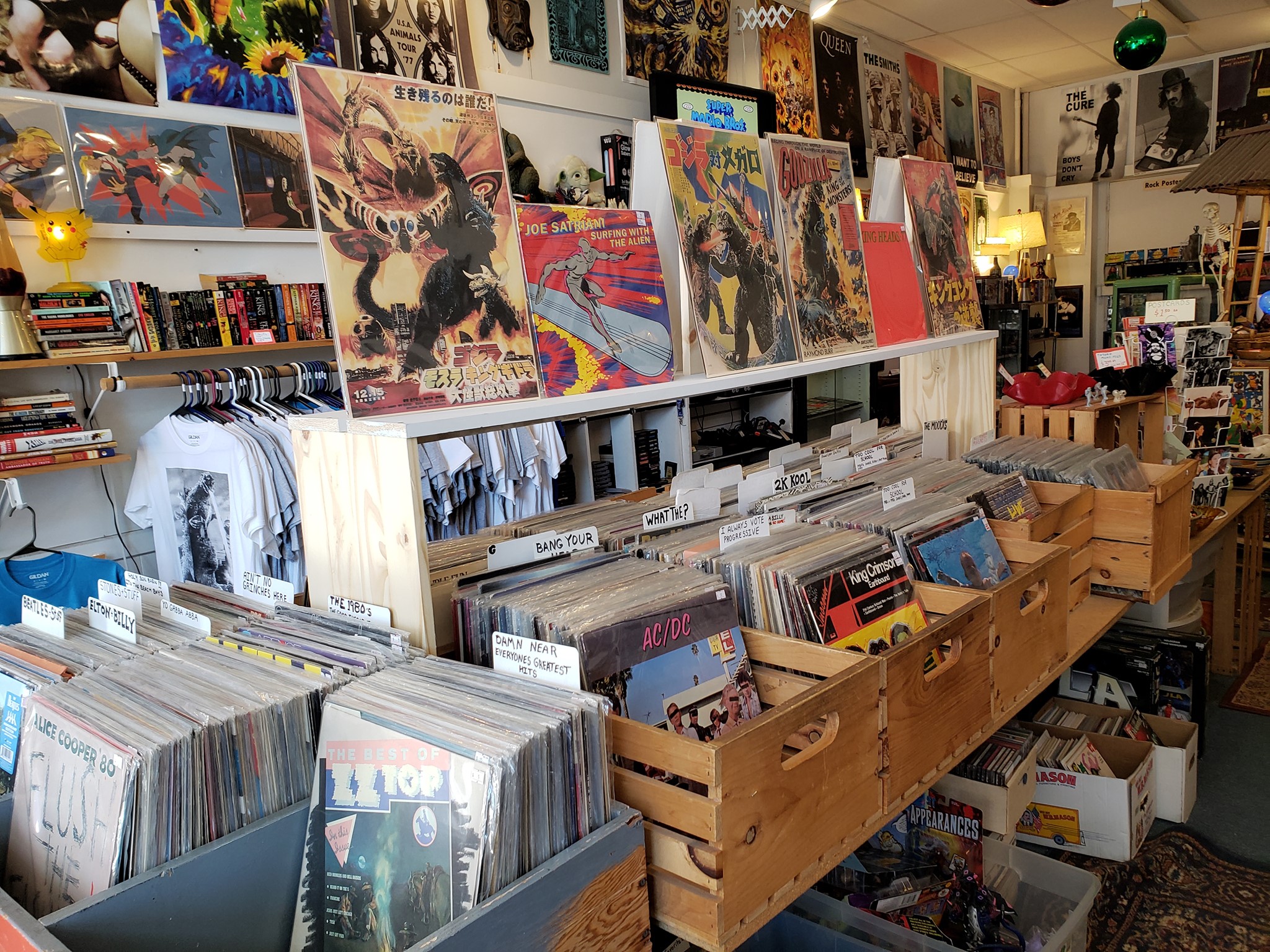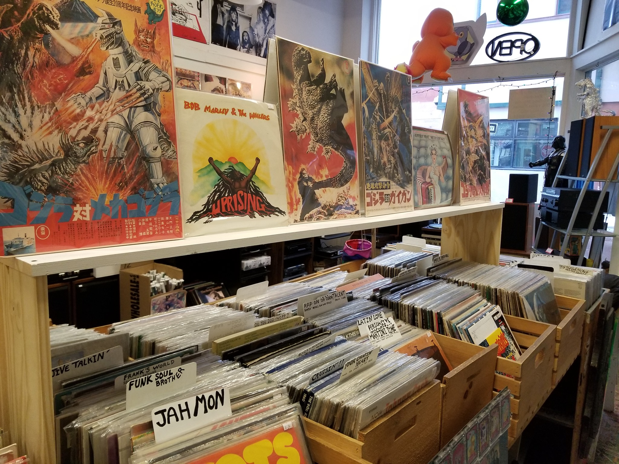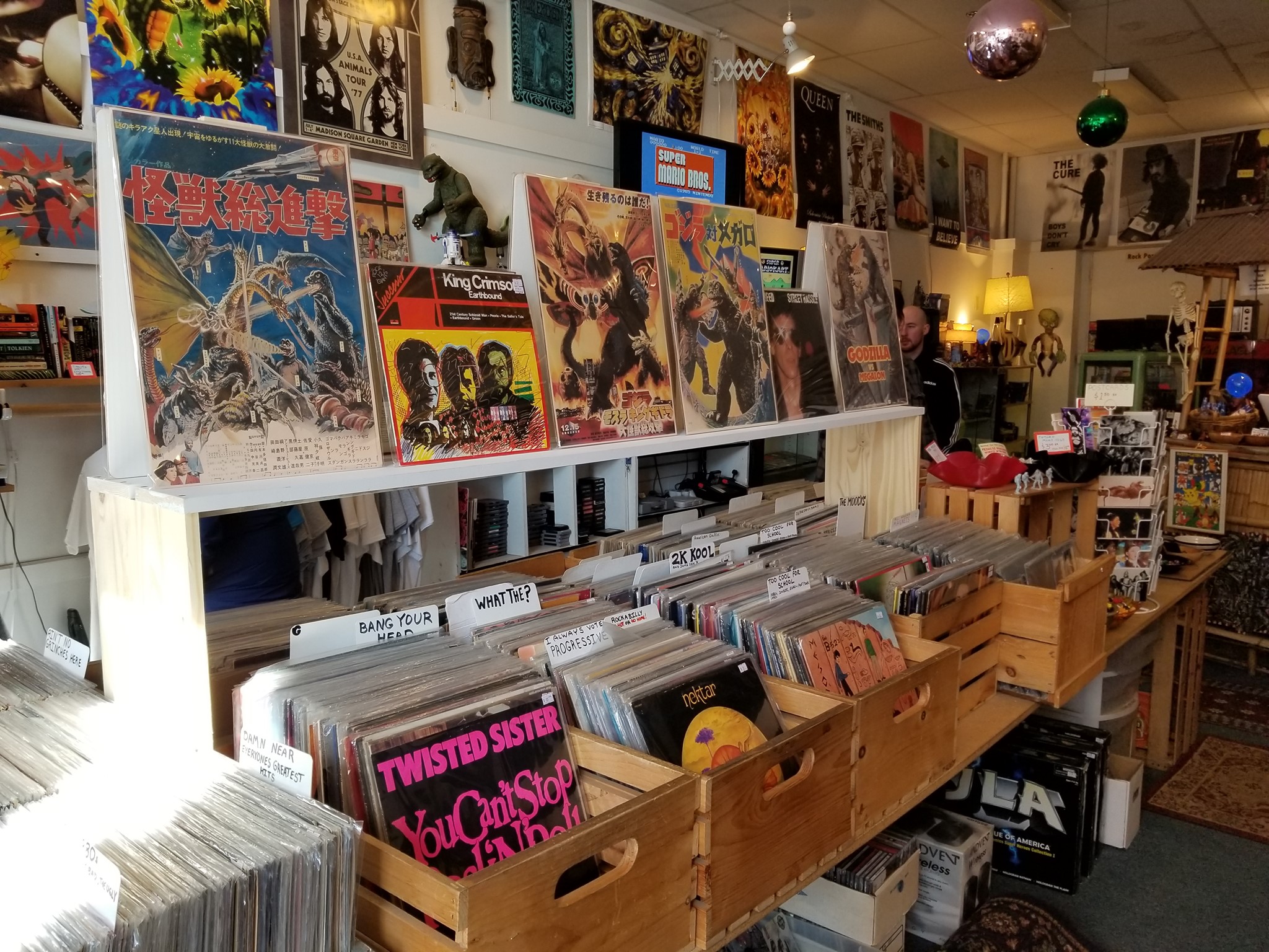 It was sad to see the shops closed but we did end up finding one that was still open. It was Electric Buddhas Records. We entered the small shop and they carried a wide variety of things; everything from Godzilla posters to albums to old video game systems. The owner, Mike Breton, seemed so genuinely appreciative of us being there and we were so happy to find a store that was actually open.